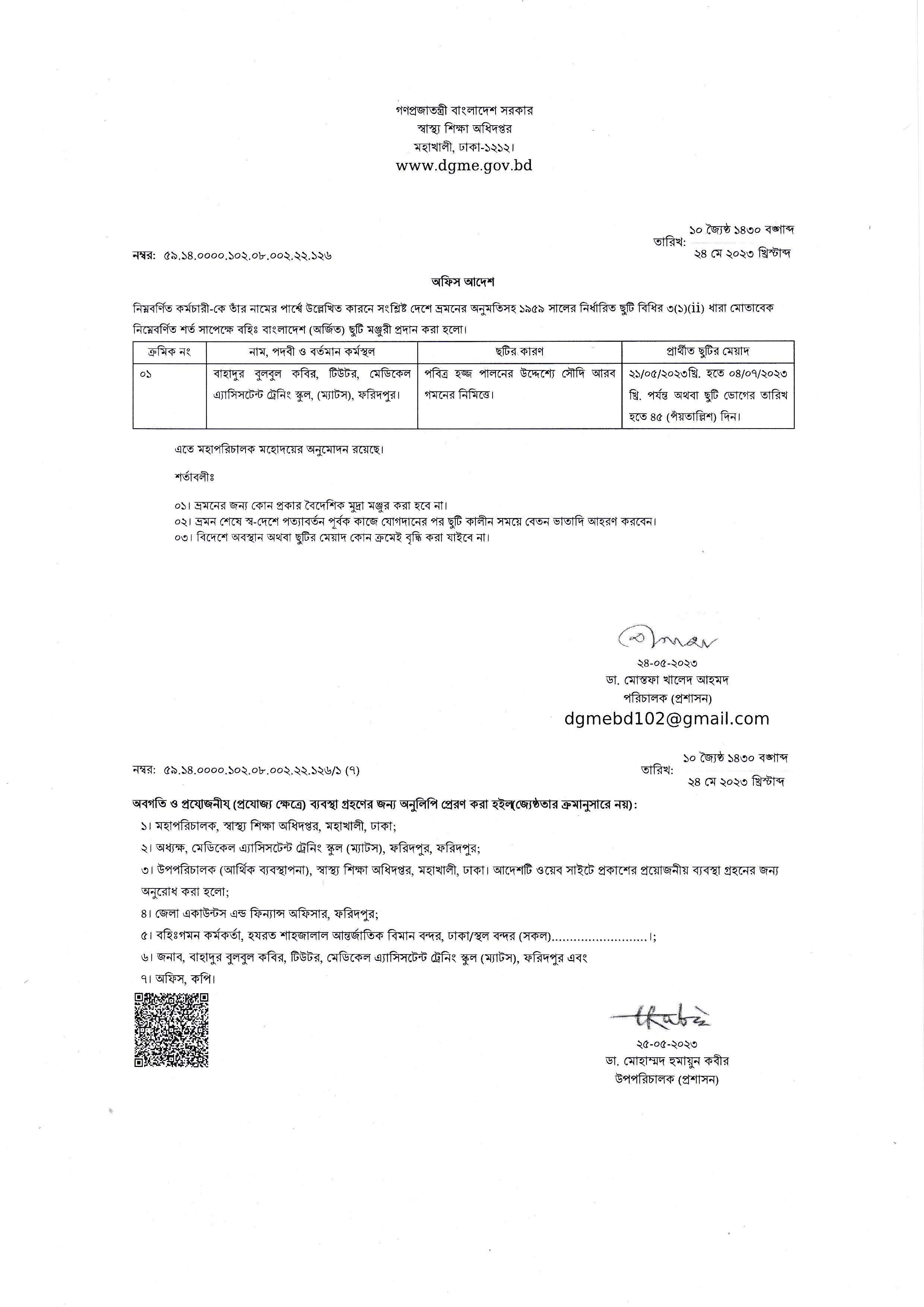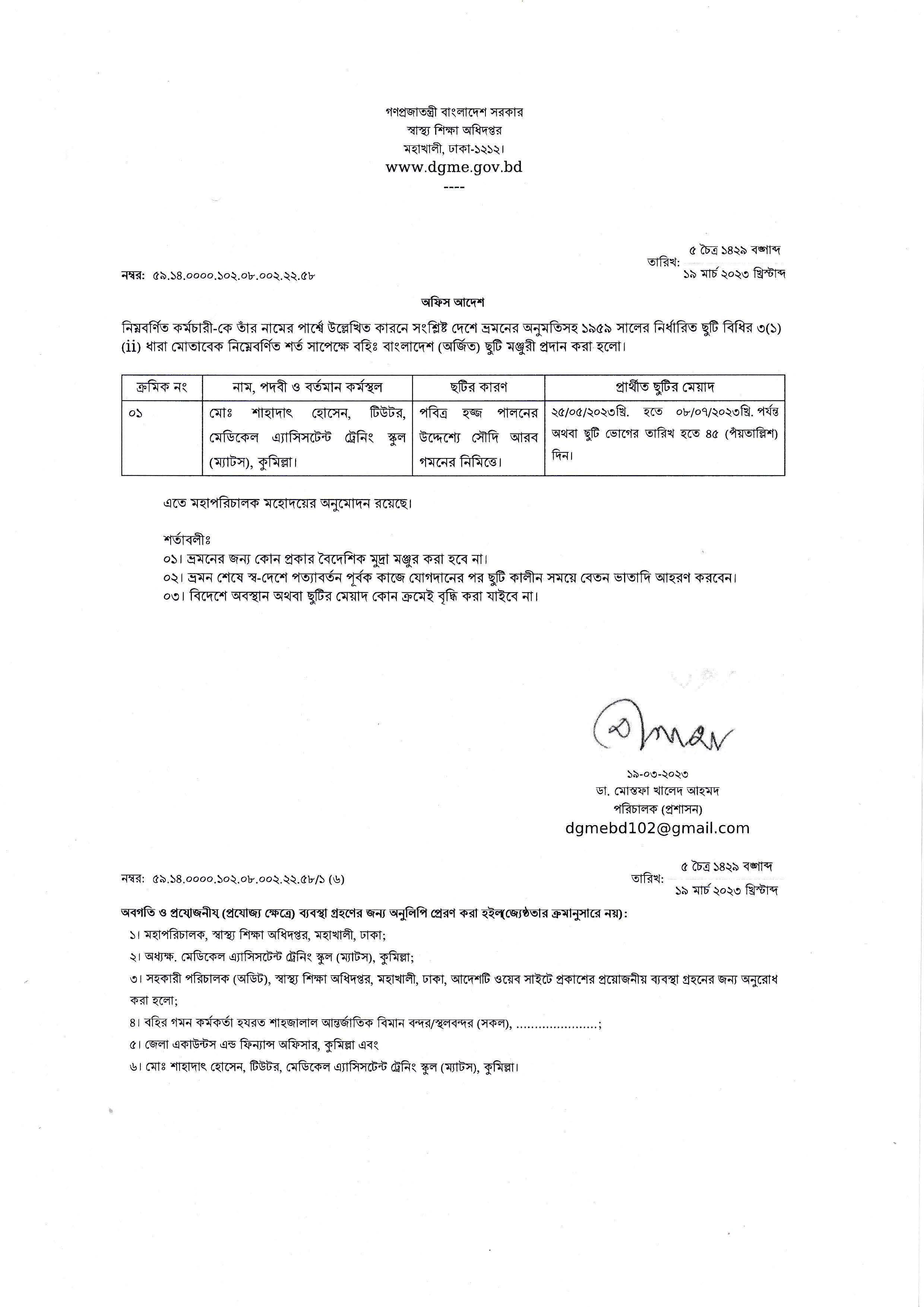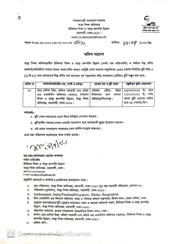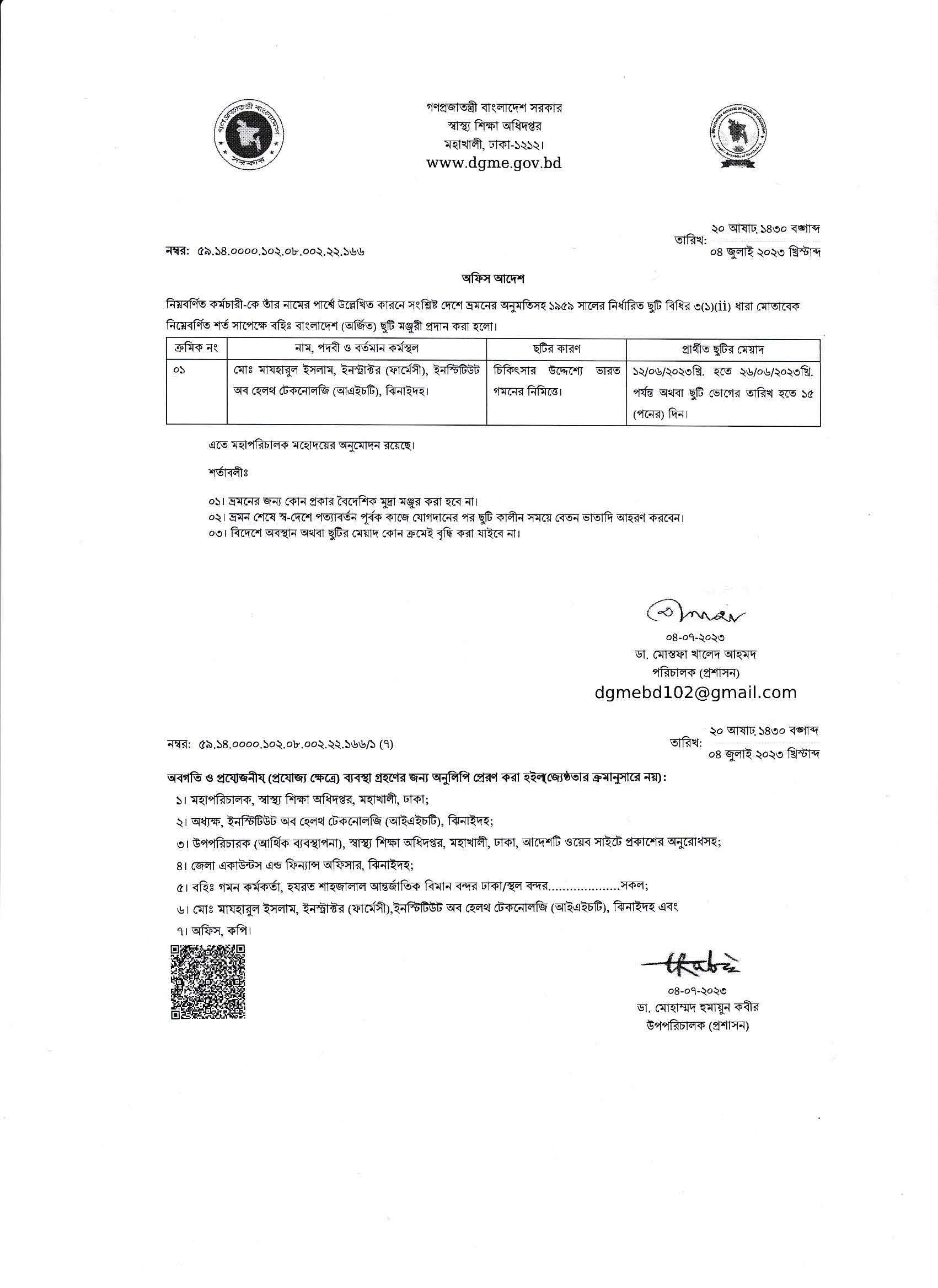 জনাবা নিবেদিতা দেবনাথ, টিউটর (ল্যাব) এর বহিঃ বাংলাদেশ অর্জিত ছুটি