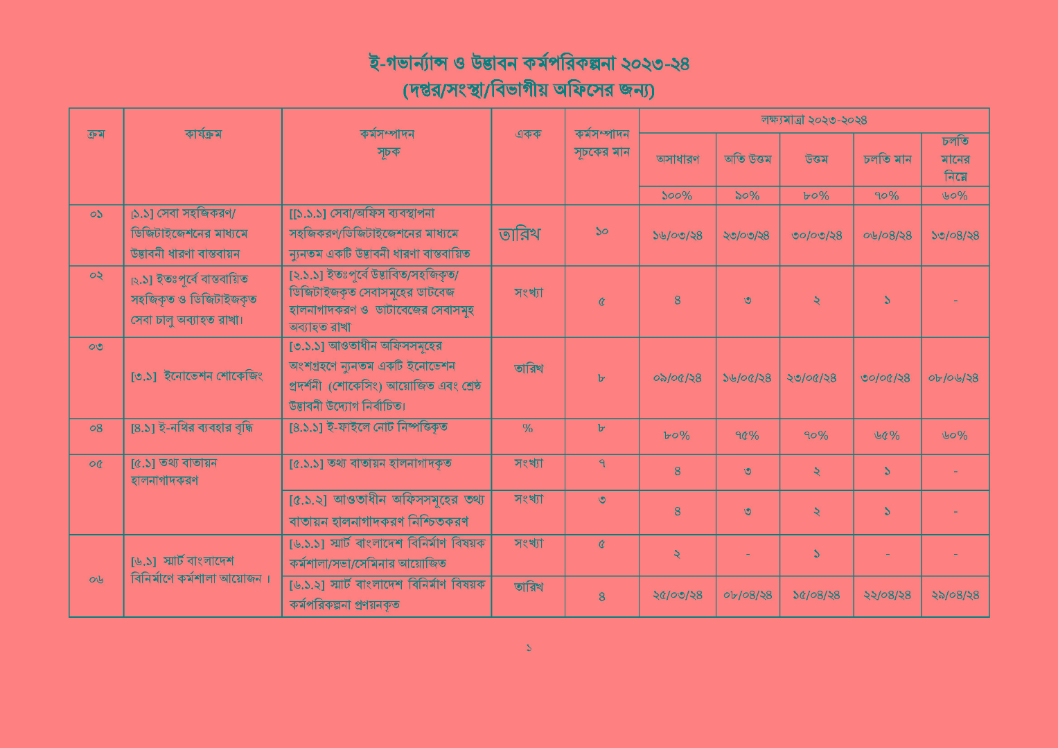 | ই-গভার্ন্যান্স ও উদ্ভাবন কর্মপরিকল্পনা | ০১/০৭/২০২৩ |